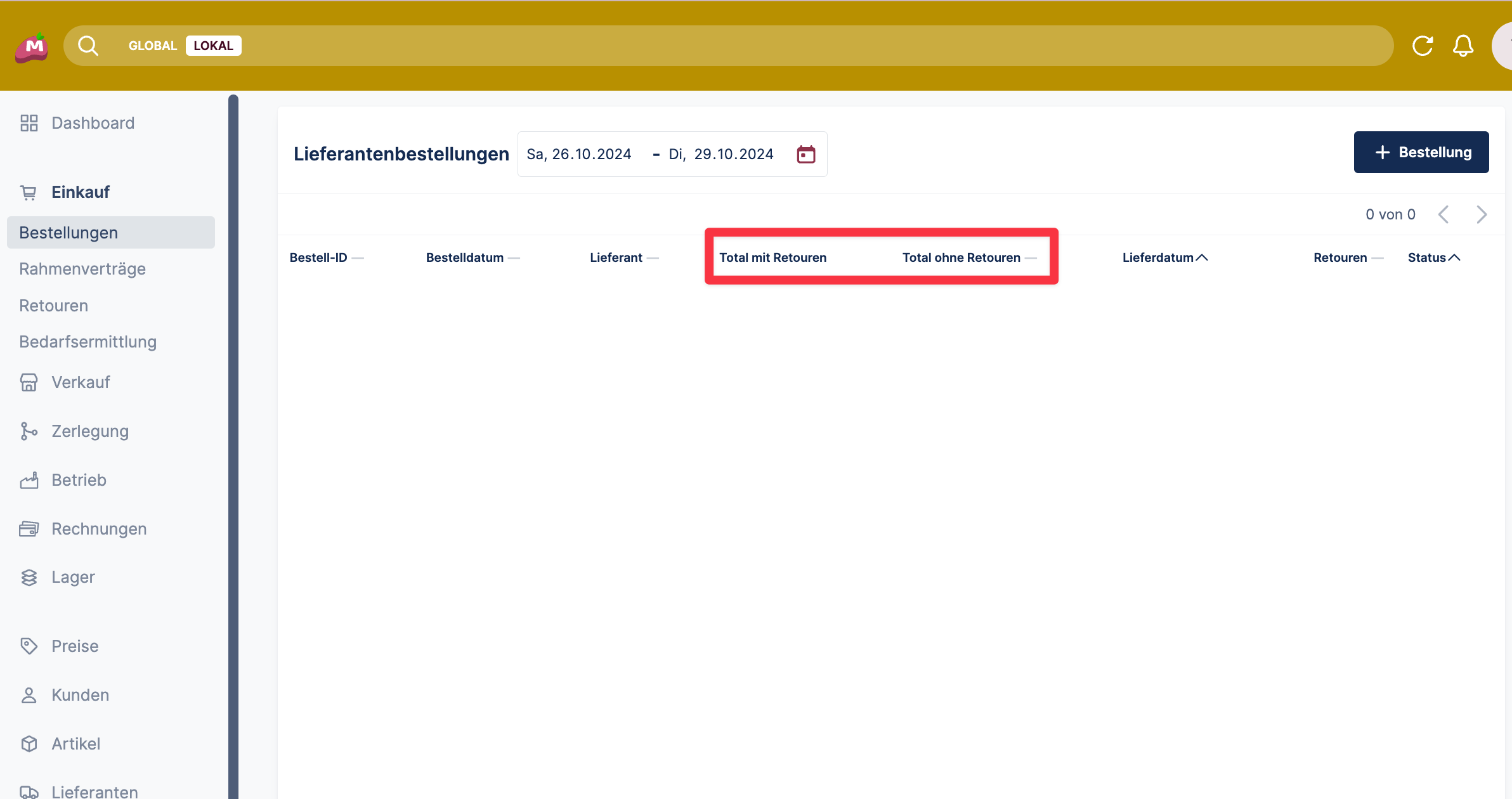 Total mit Retouren: Entspricht dem aktuellen Betrag.