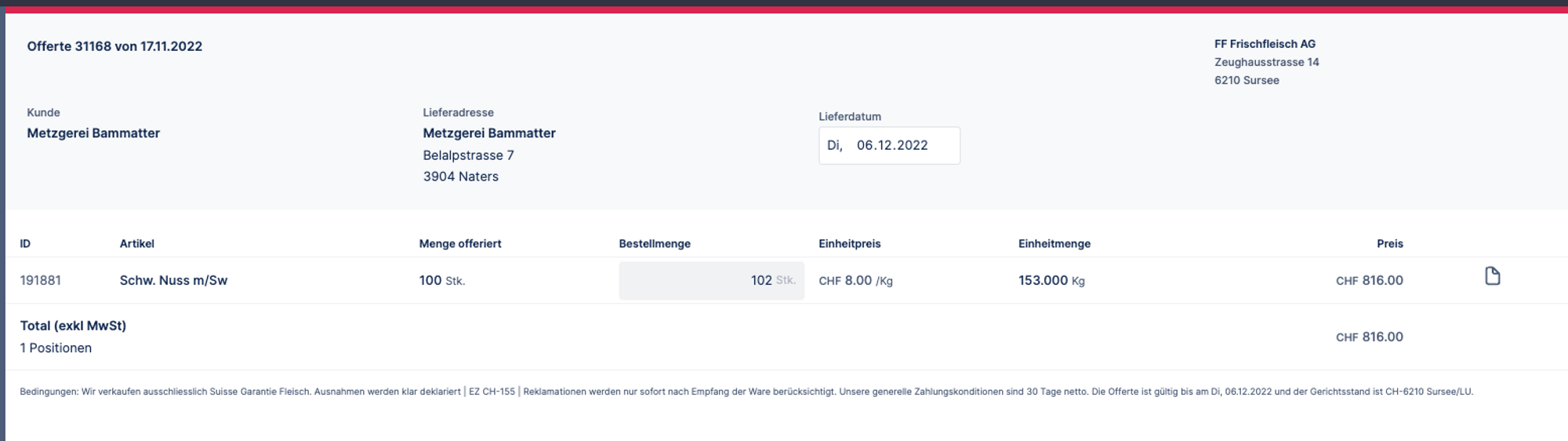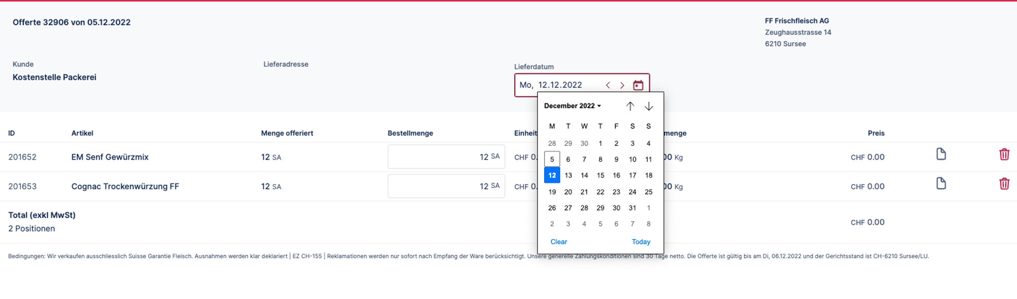 Interne Bestellungen: Bei internen Bestellungen kann der interne Kunde das Lieferdatum ändern bevor die Offerte akzeptiert wird.