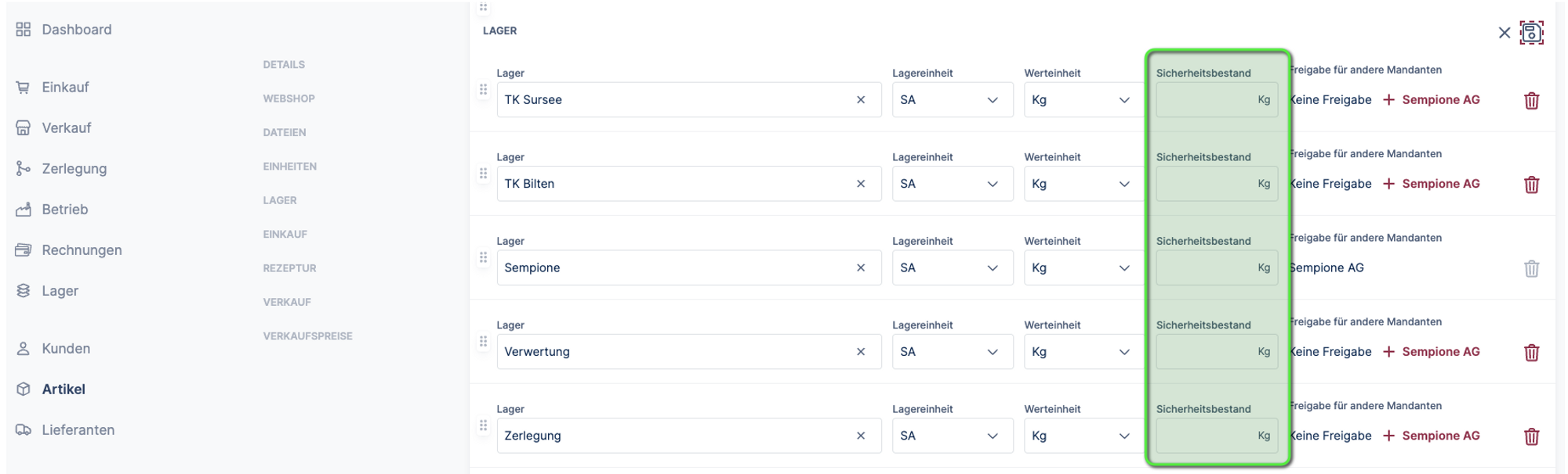 Beim Hinzufügen von neuen berechtigten Lager ist der Sicherheitsbestand kein Pflichtfeld mehr.