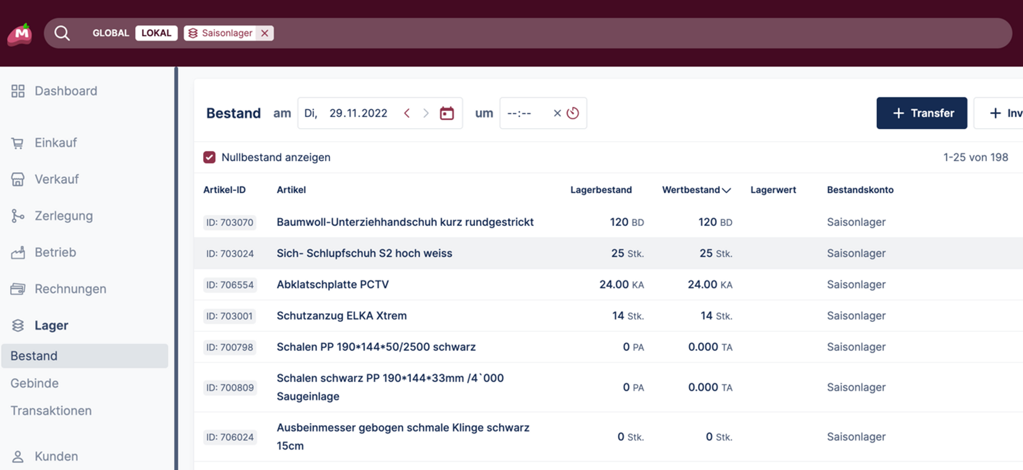 Die Bestand Ansicht erhält eine Option zur Anzeige von Nullbestand für Artikel die im Lager berechtigt sind.