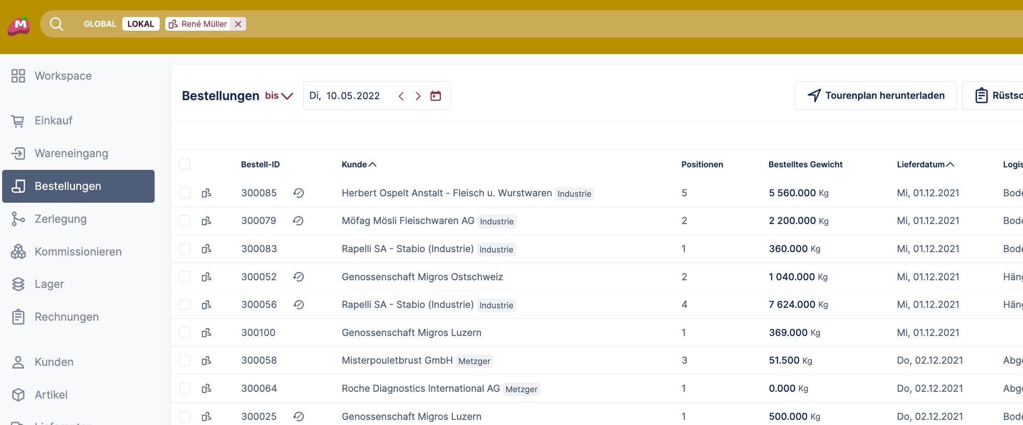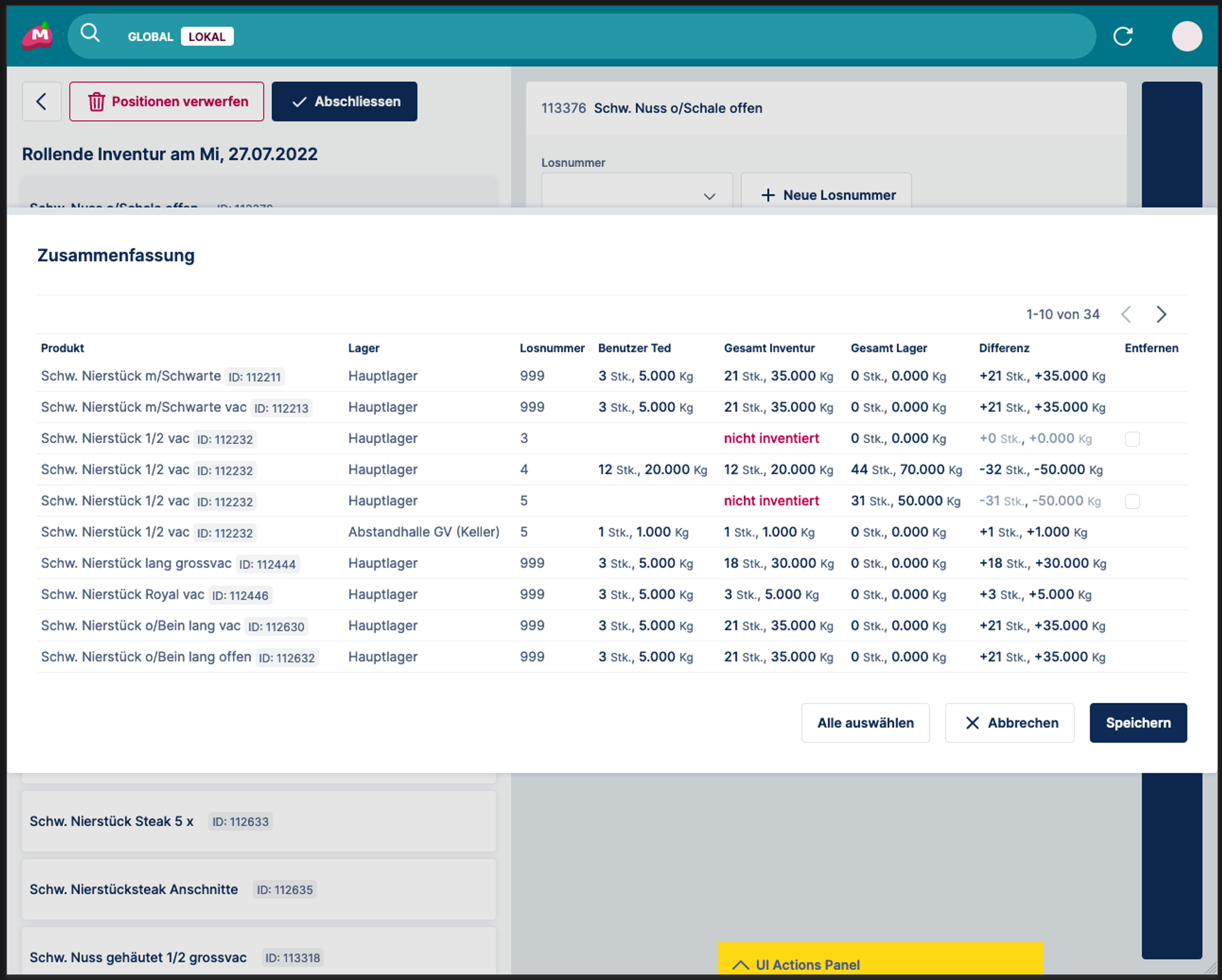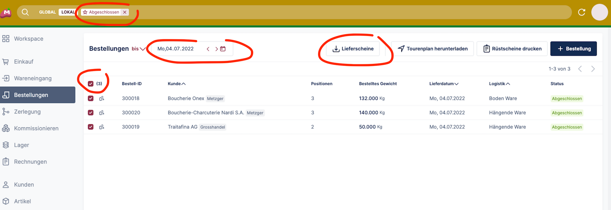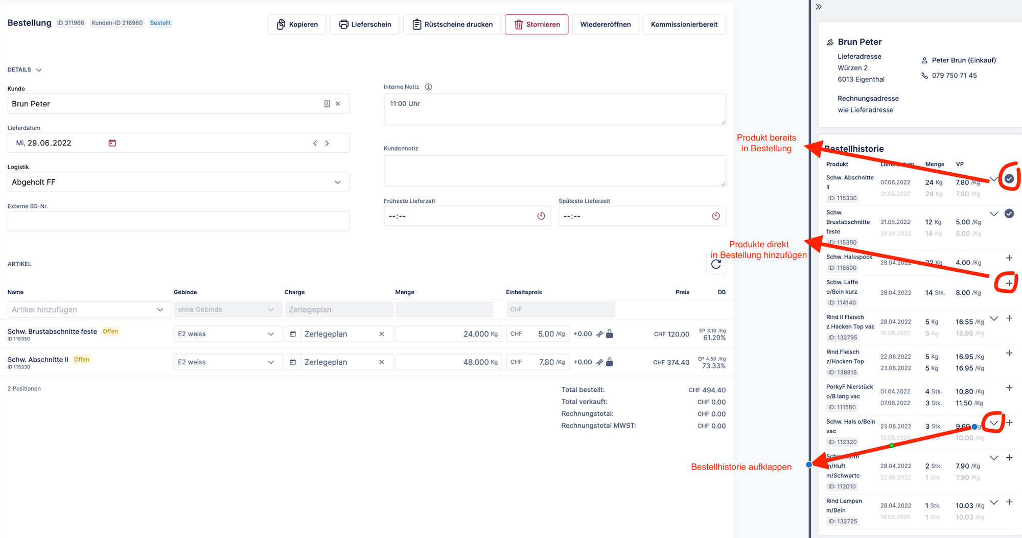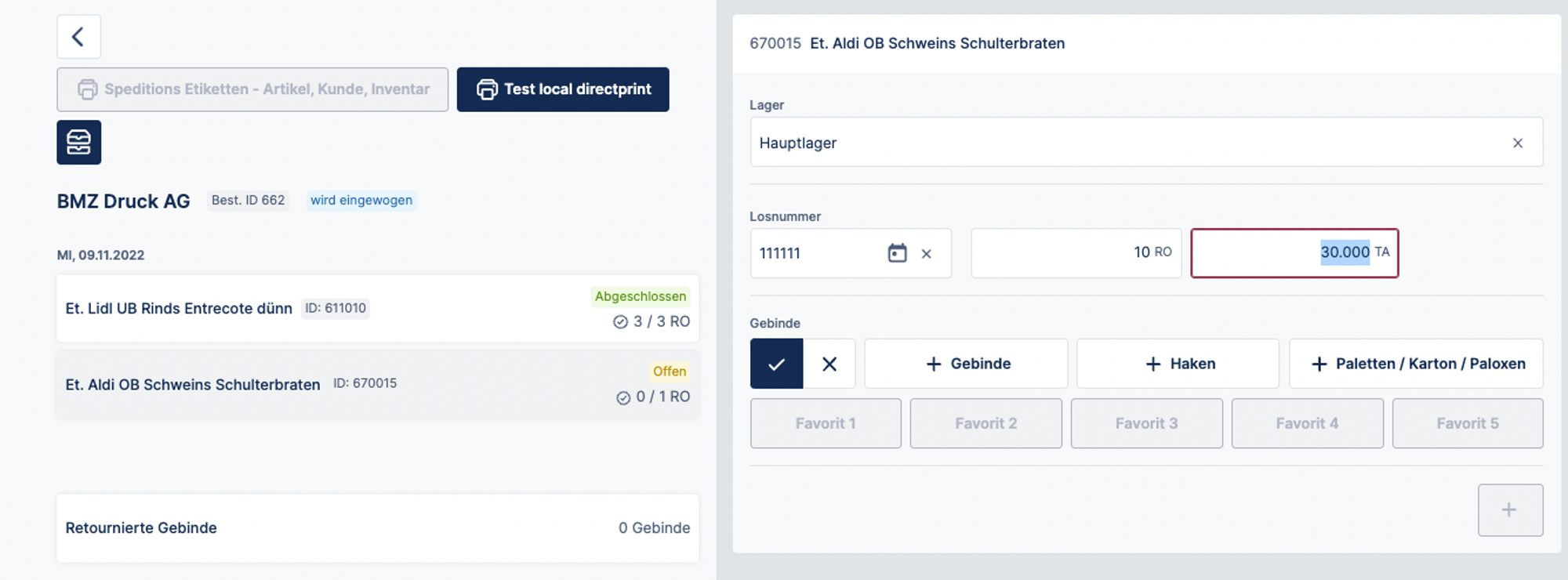 Wenn im Status zurück gegangen wird (z.B. von eingewogen auf bestellt), müssen bereits eingewogene Artikel manuell bearbeitet werden.