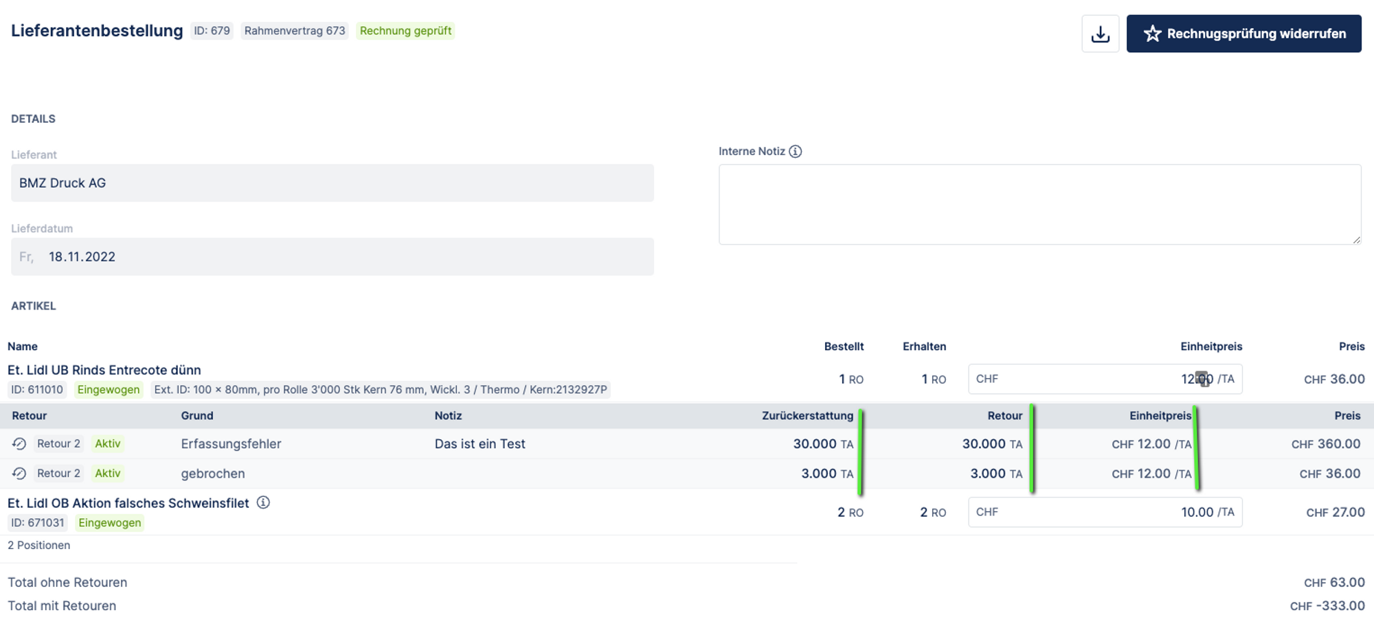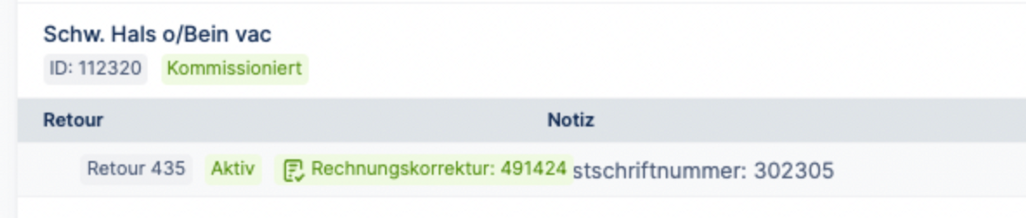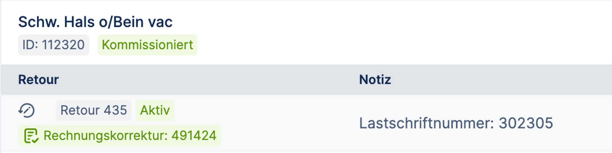Wenn Retouren für eine Bestellung vorhanden sind, sieht die Ausrichtung ansprechend aus.