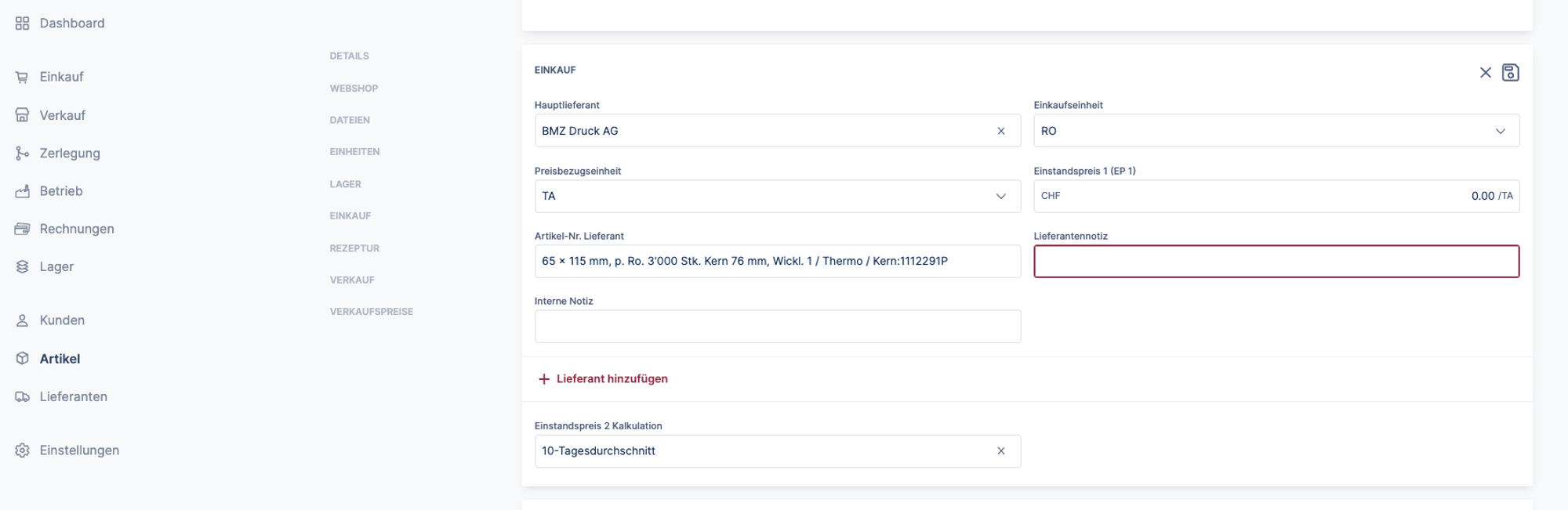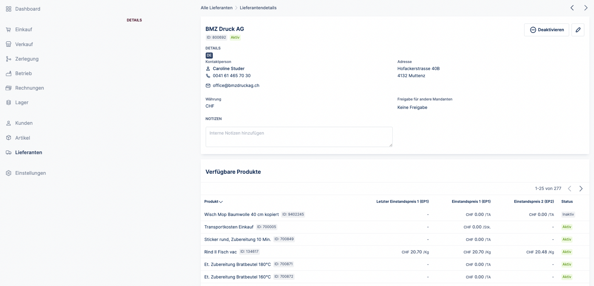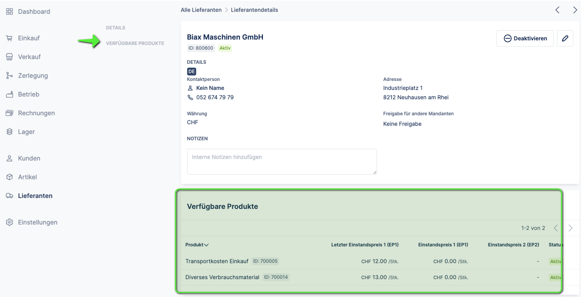 Verfügbare Artikel sind in den Lieferanten Stammdaten ersichtlich.