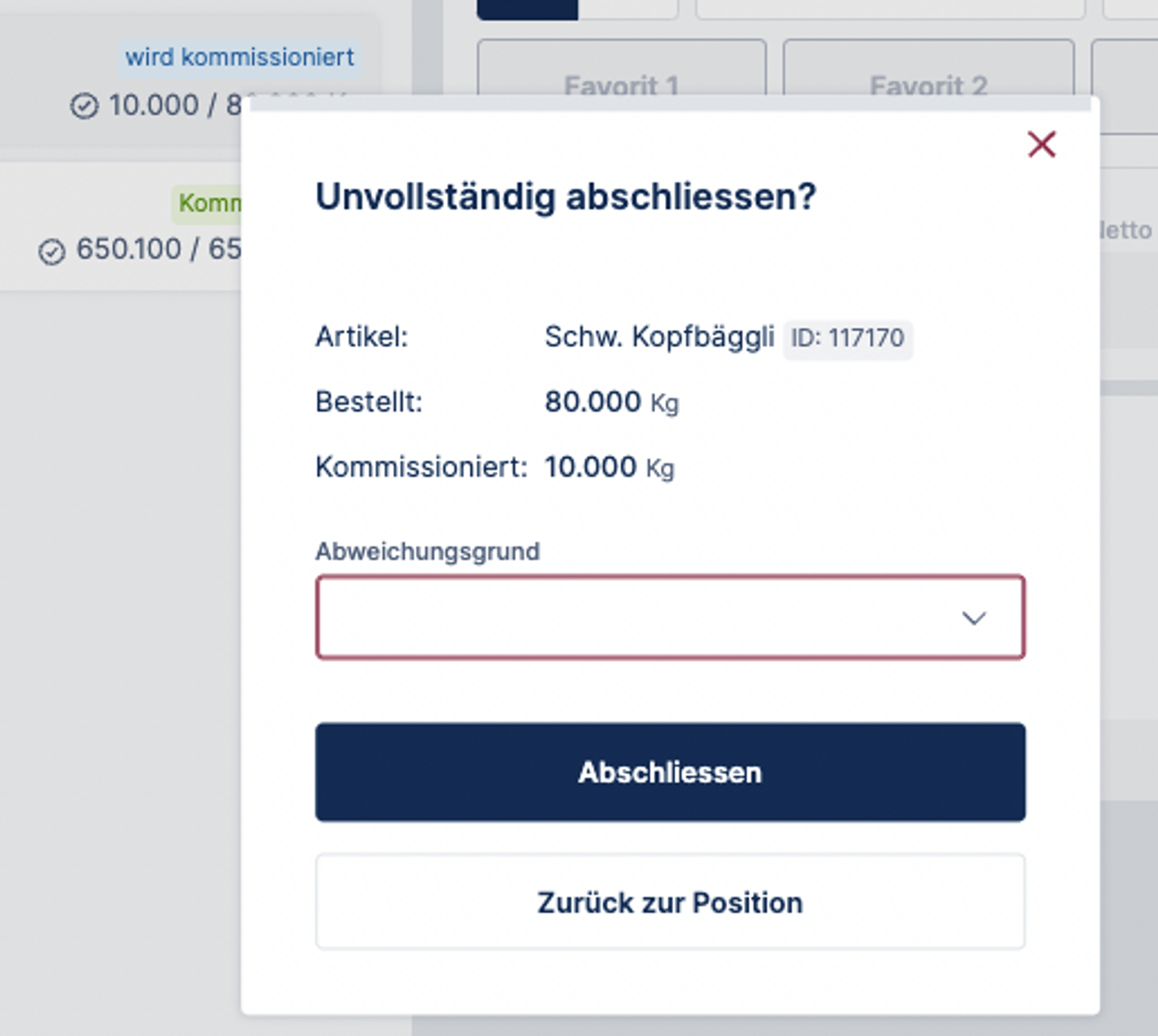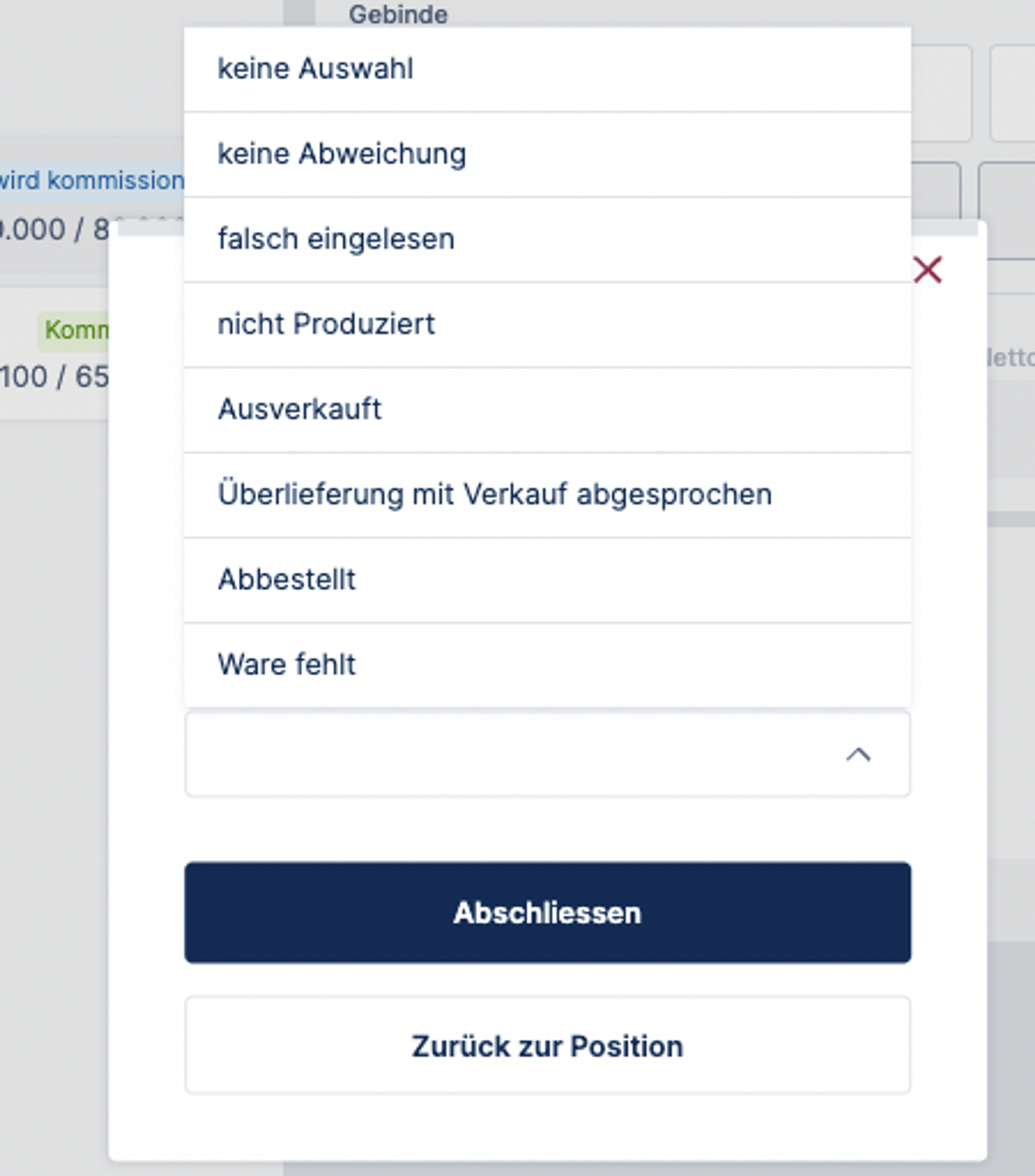 Kommissionierung: Die Erfassung des Abweichungsgrundes neu mit DropDown: