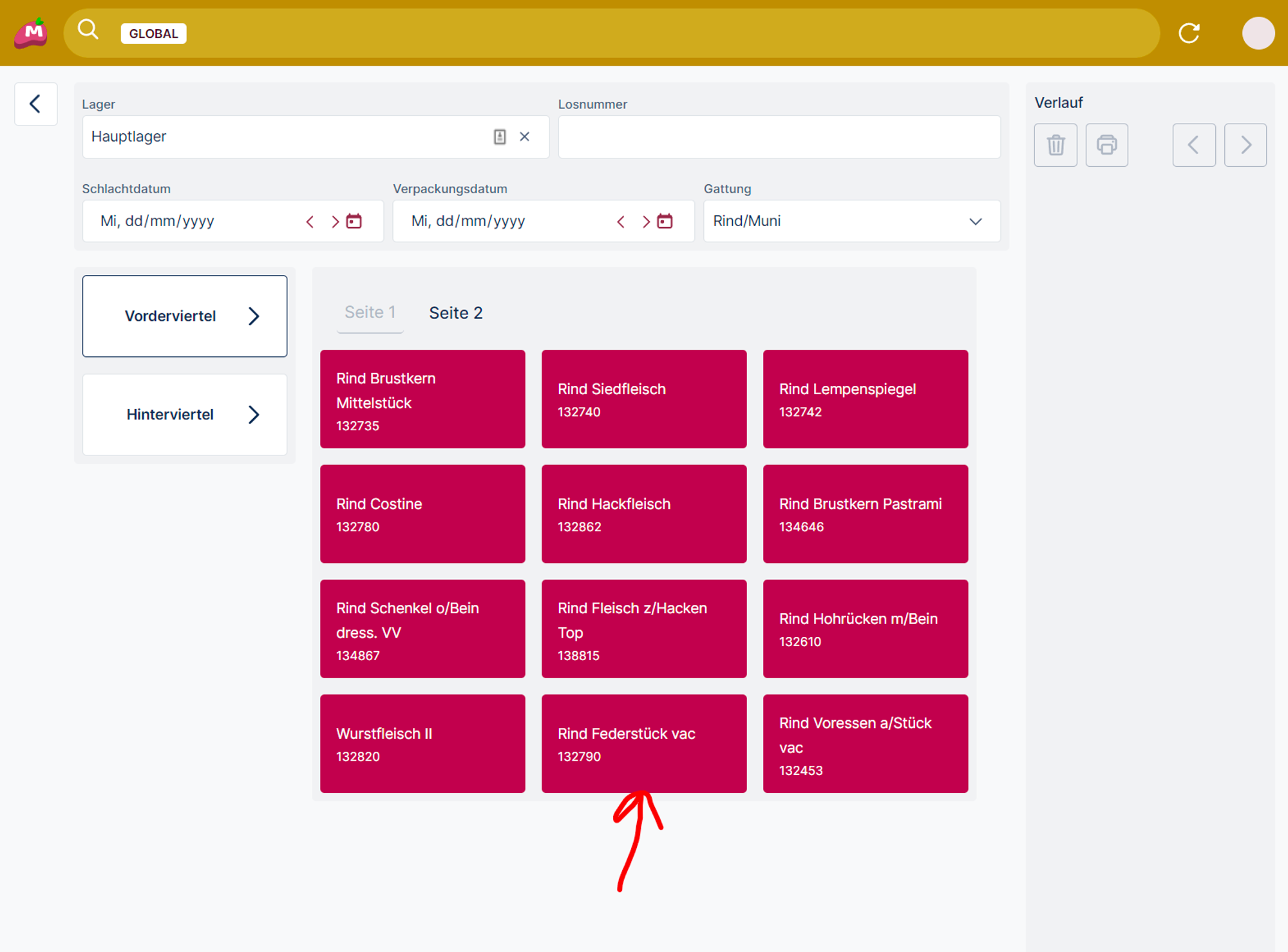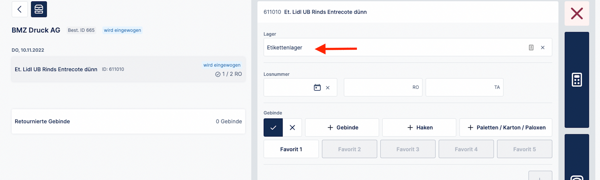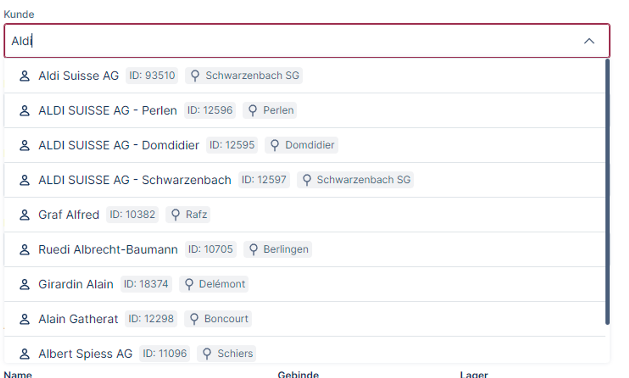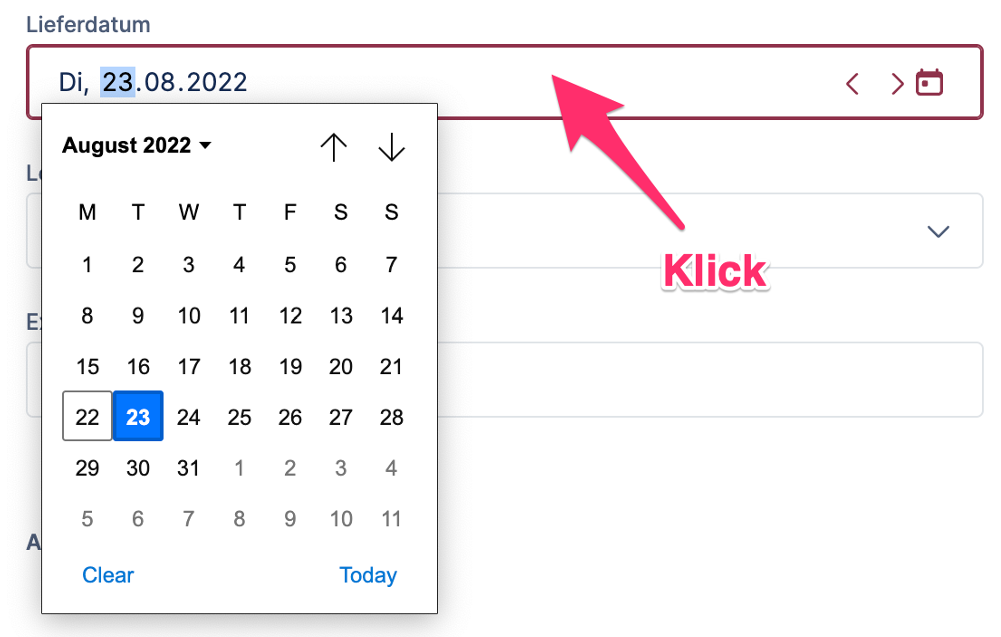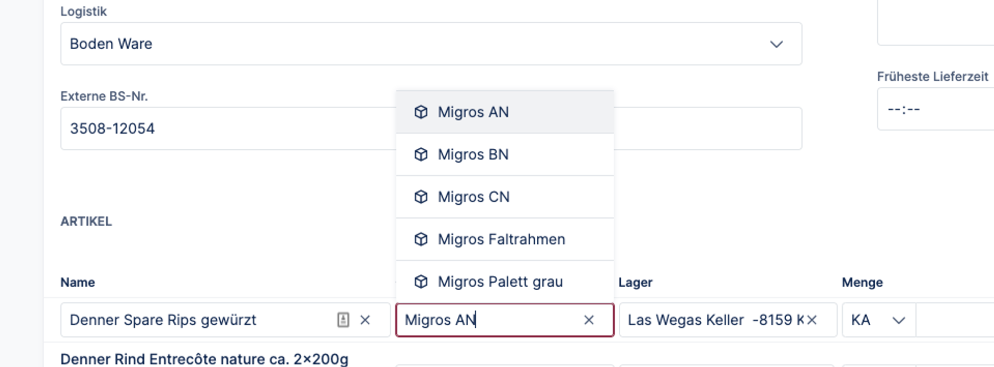 Auswahl des Lagers: das ganze Feld ist klickbar (nicht nur der Pfeil)
