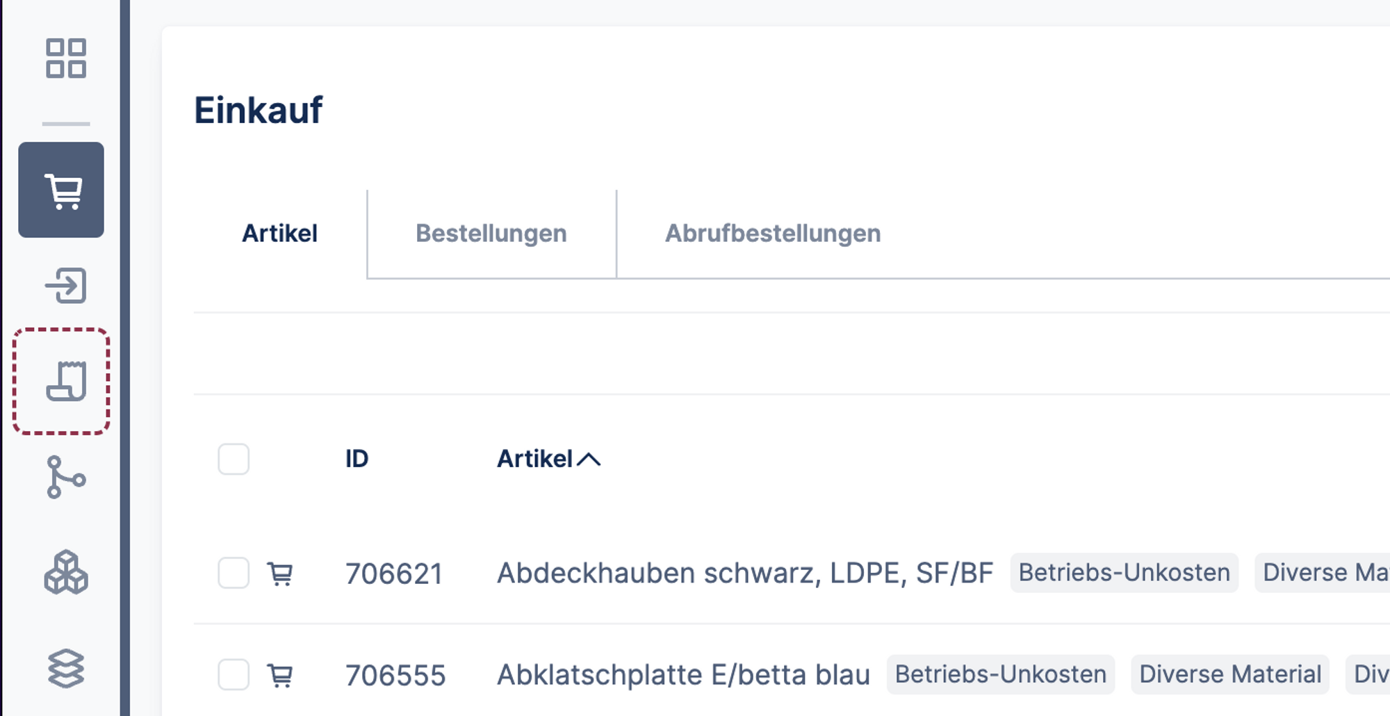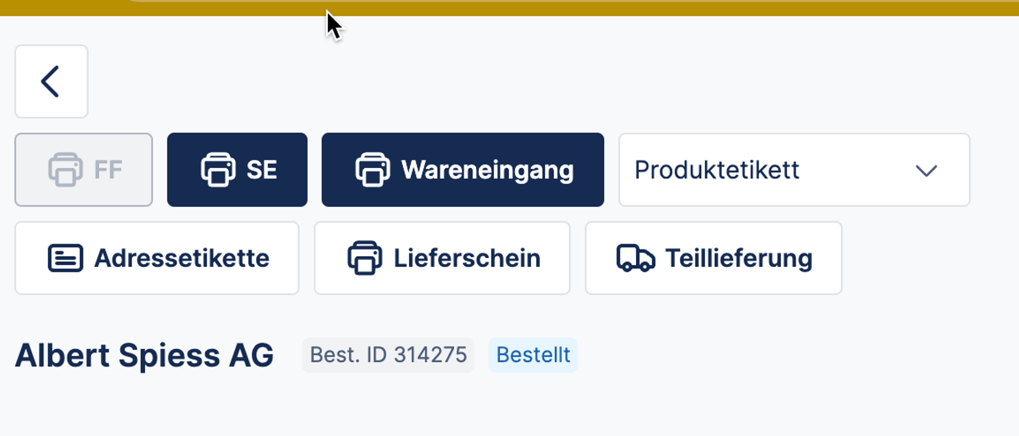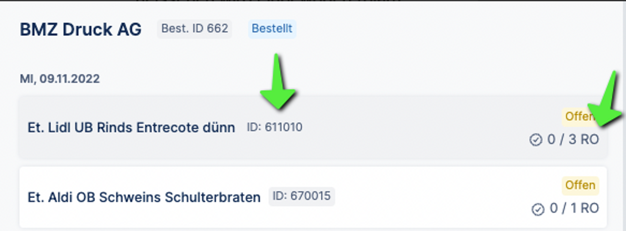 Status Tags der Lieferantenbestellung führen direkt zur Wareneingangs-Ansicht.