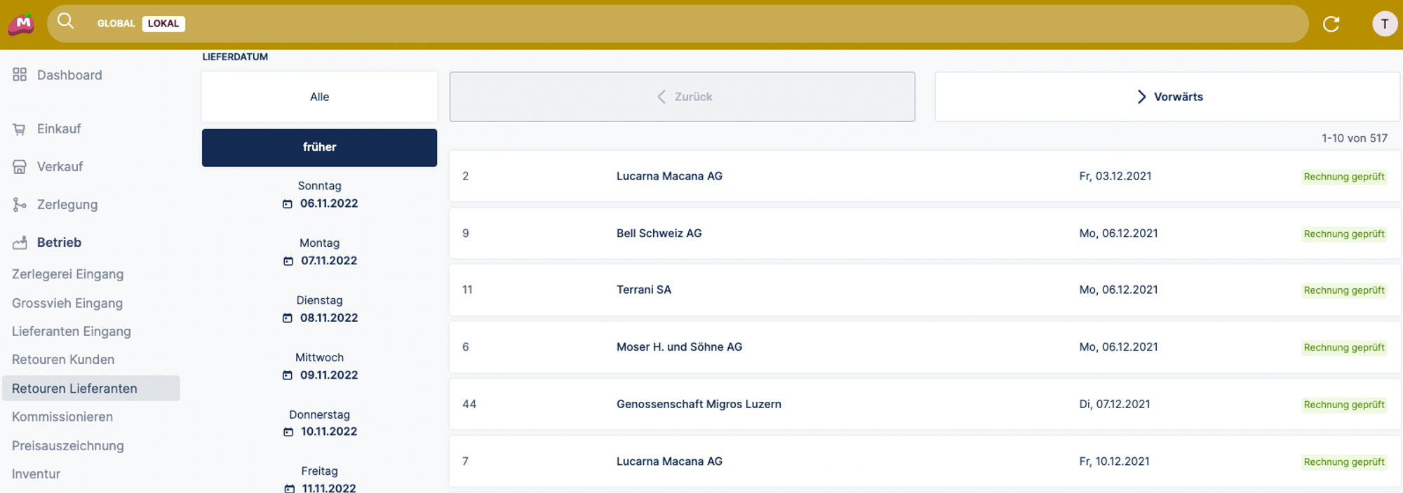 Eine neue Übersicht für die Kunden sowie Lieferanten Retouren ist verfügbar.