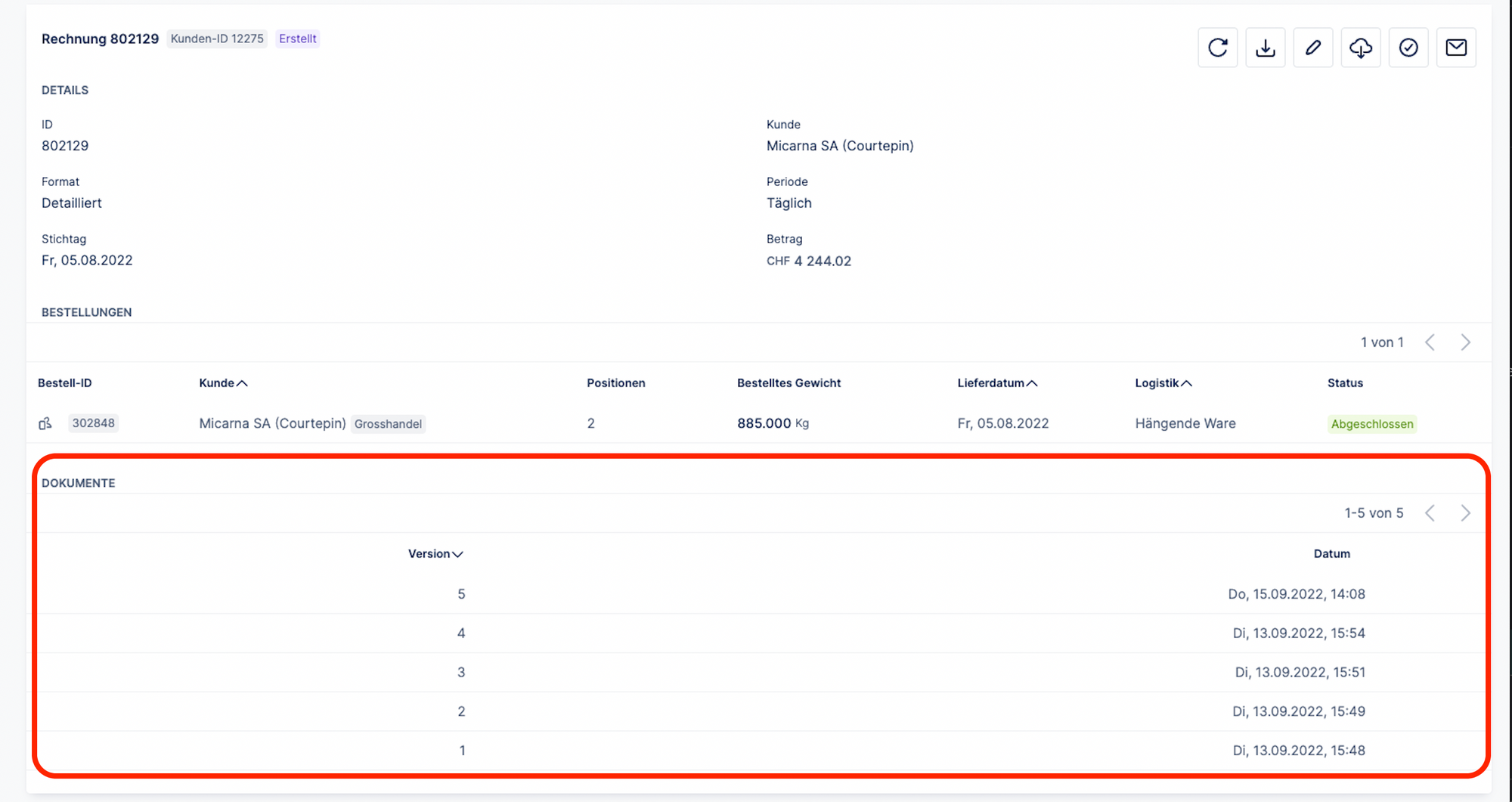 Rechnungen und Gutschriften: die Übersicht ist neu mit “Pagination” anstatt “Endless Scrolling” gelöst. Zudem können die Tabellenspalten jetzt sortiert werden, und “Mehrfach-Aktionen” sind auf beiden Ansichten möglich. Die Suche nach Gutschriftnummern und Kunden ist ebenfalls aktiviert.