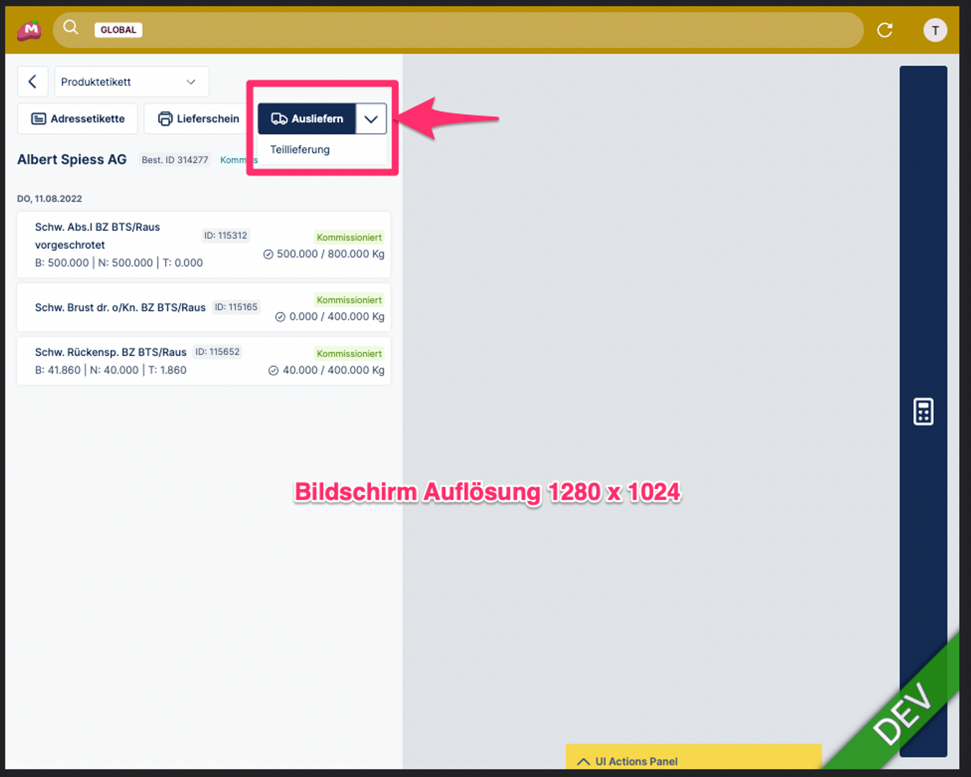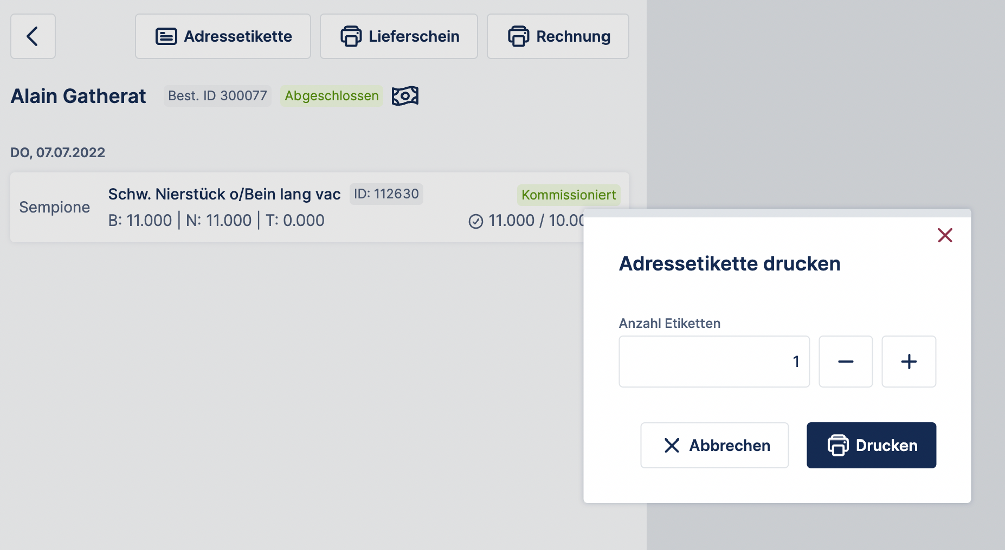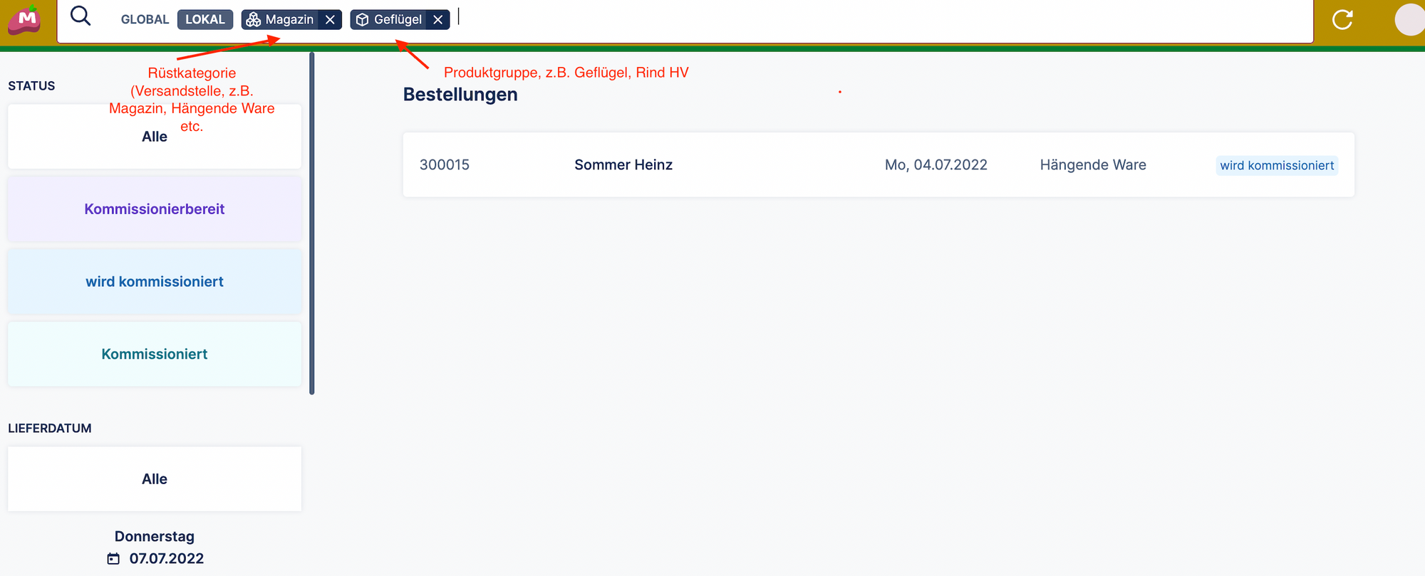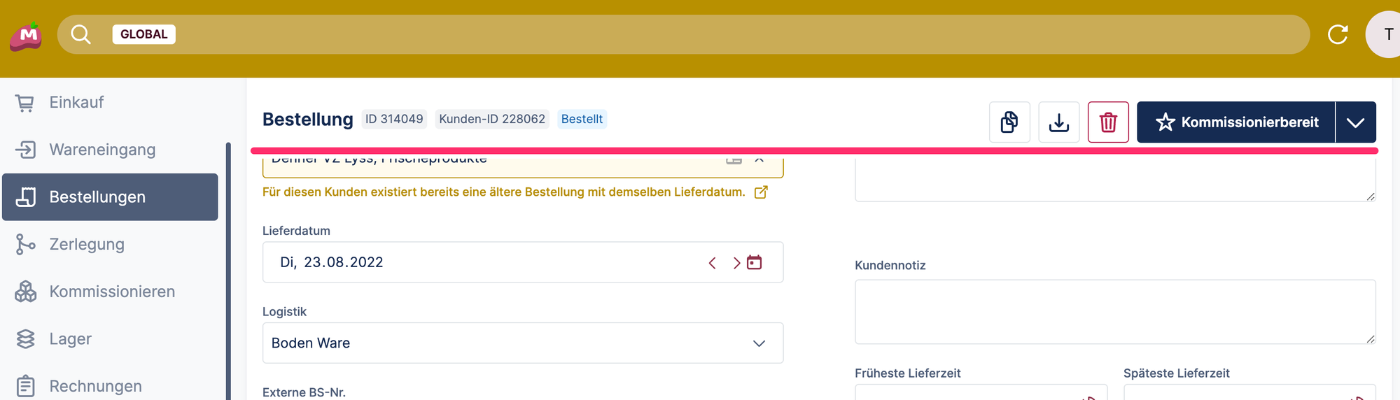 Nach dem Status Bestellt wird der Statuswechsel zu Kommissionierbereit nun direkt auf dem Button angezeigt.