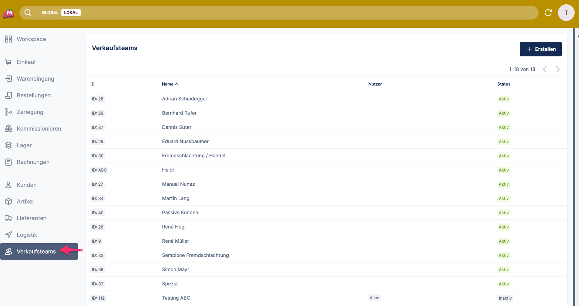 Vorbedingung: Damit die Benachrichtigungen für die gewünschten Benutzer funktionieren, sind die Mitglieder des bei dem Kunden hinterlegten Verkaufsteams zu konfigurieren.