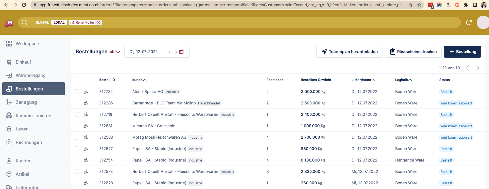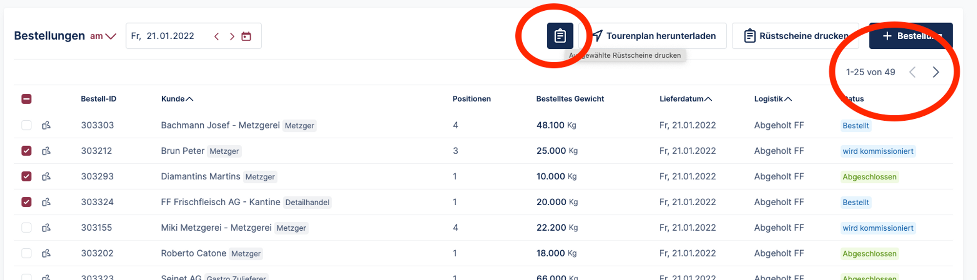 Bestellungen: Übersicht neu analog Rechnungen mit “Pagination” anstatt “endless scrolling” gelöst. Die Tabellenspalten können jetzt sortiert werden und “Mehrfach-Aktionen” sind möglich.