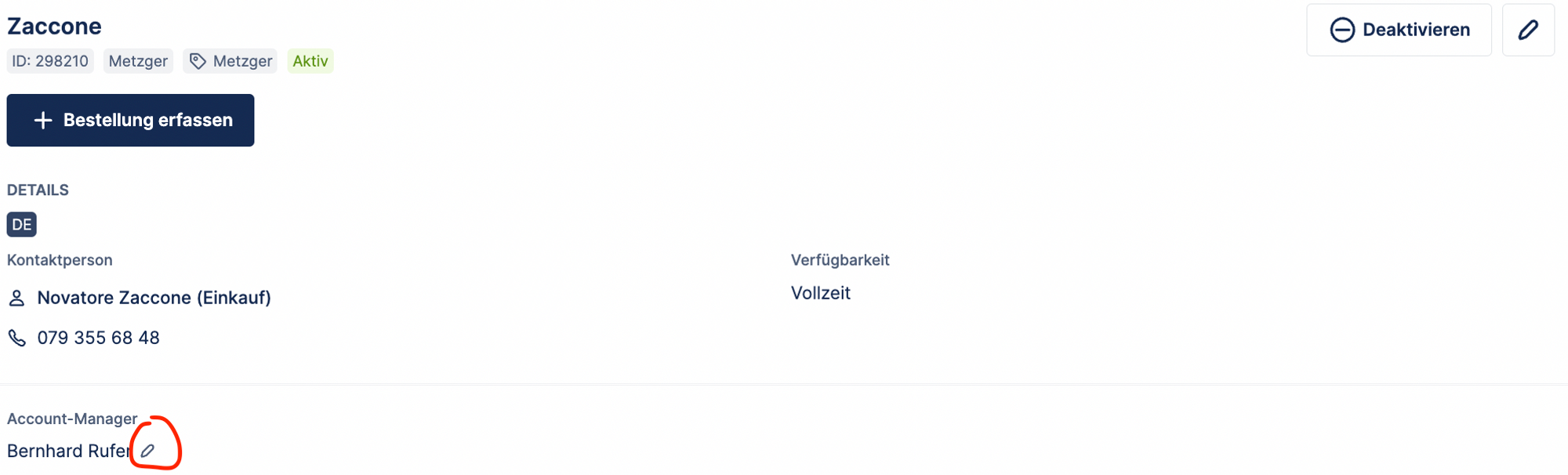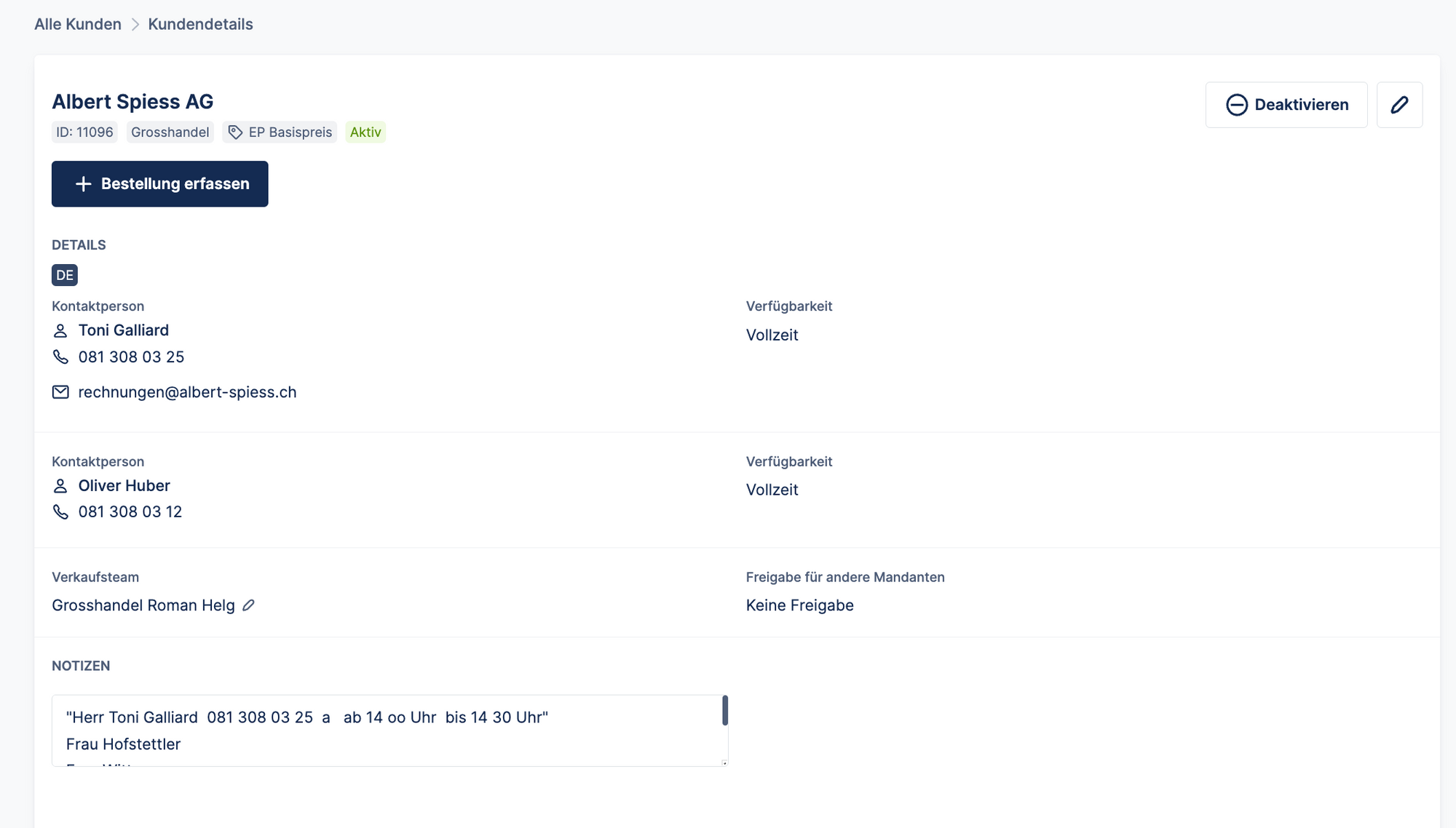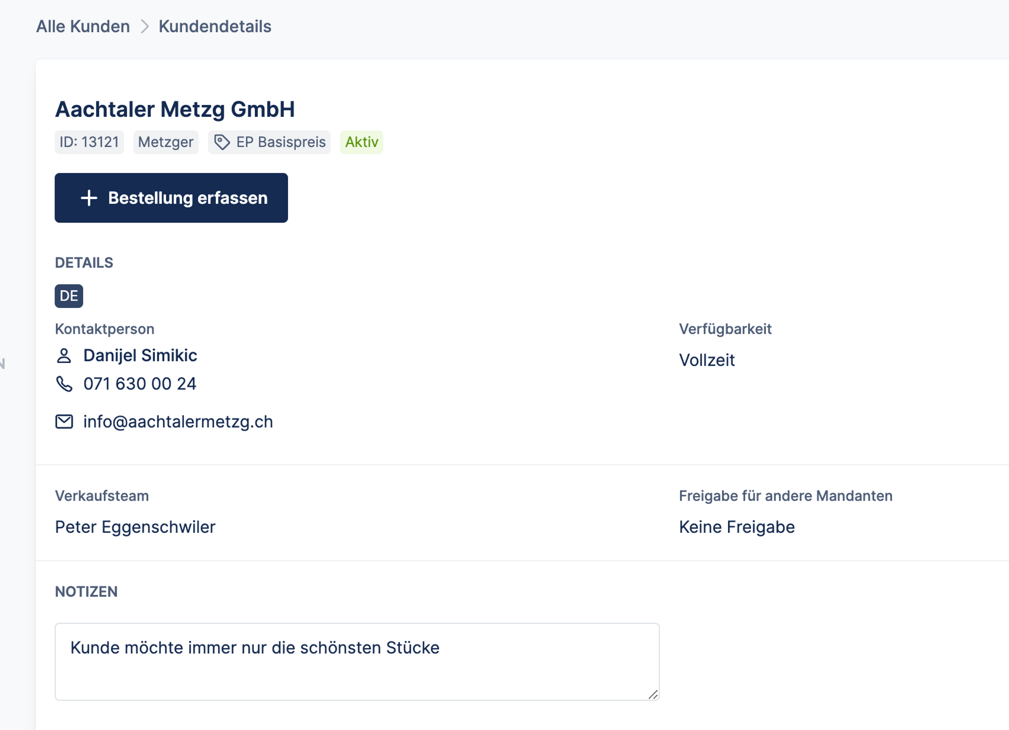Ein Klick auf die Kunden-ID führt zur Stammdaten Ansicht des Kunden.