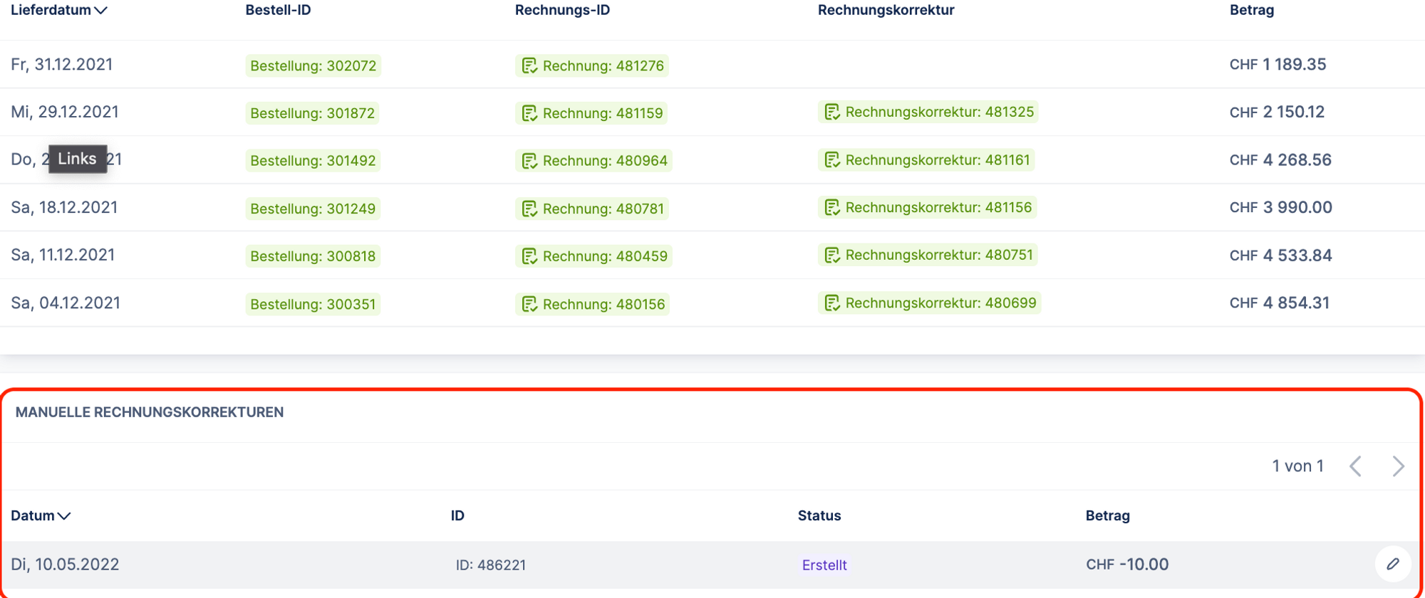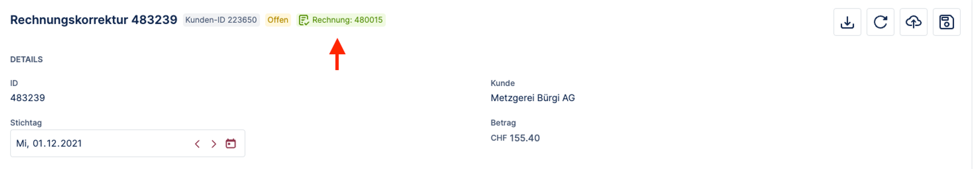 ID Rechnungskorrektur (Gutschrift / Nachbelastung) auf Bestellung referenziert