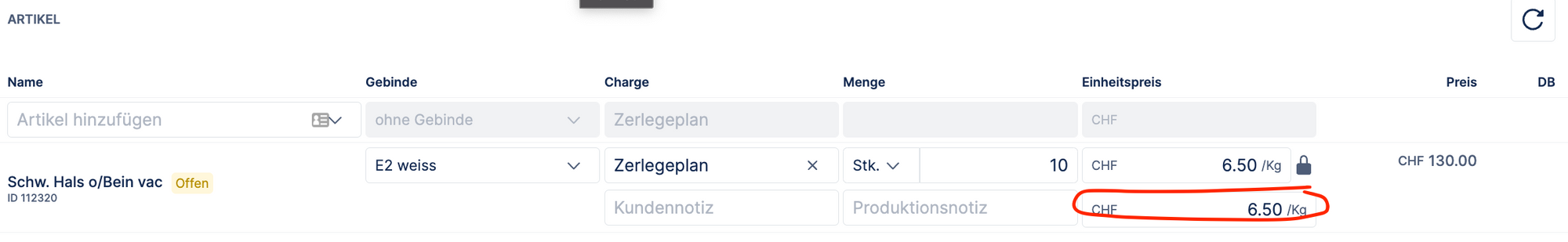 Der Preis der einzelnen Artikel Zeilen wird auch im Status abgeschlossen korrekt angezeigt.