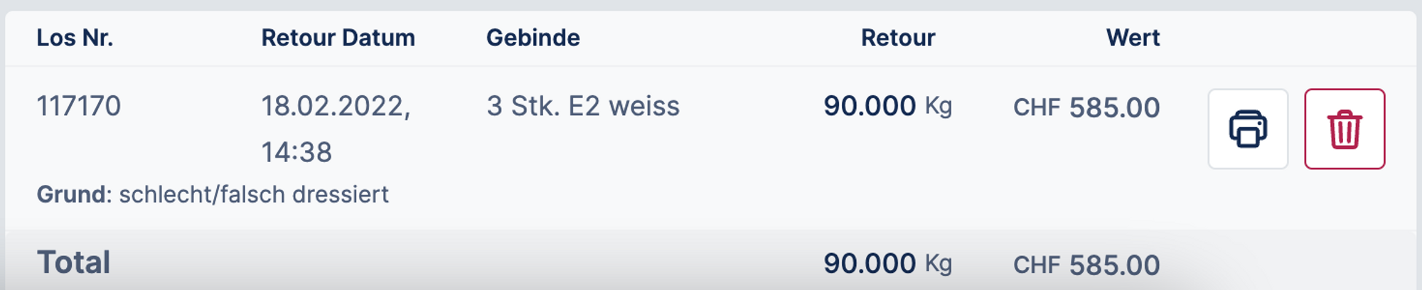 Das Total wird mit und ohne Retouren berechnet und angezeigt.