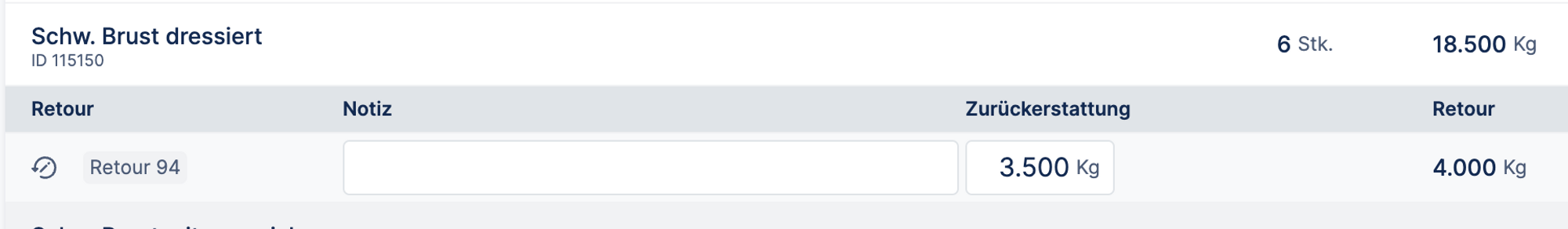 Korrekte Anzeige des Retouren Gewichts auf Rechnung oder Rechnungskorrektur